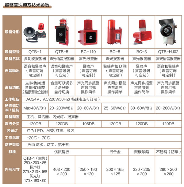 報警器系列產(chǎn)品LED閃光燈和擴音喇叭同時示警的設備,具有高亮度閃光、響亮音頻報警功能,廣泛用于冶金鋼鐵、港口碼頭、化工、電力、煤礦礦山、工程機械、橋梁隧道等行業(yè)設備及場所,我公司致力于智能聲光報警設備的研發(fā)與制造,采用先進的聲光控制技術內置語音IC芯片,滿足不同領域的需求,產(chǎn)品具有重量輕、防水、防塵?拐、抗干擾、使用簡單等優(yōu)點,針對不同生產(chǎn)場所環(huán)境和設備開發(fā)的系列產(chǎn)品有:多功能起吊報警器、聲光報警器、語音聲光報警器、防爆報警器、電子蜂鳴器等